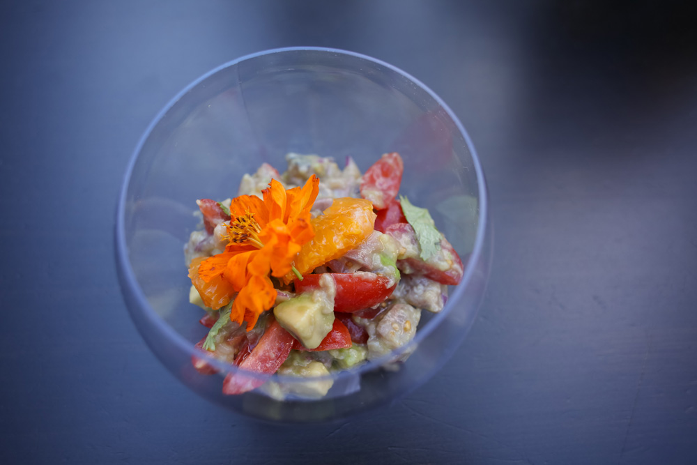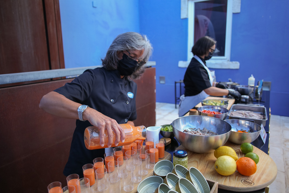 Gaspacho com creme de manjericão, ceviche de sardinha com abacate e tangerina e filete de sardinha marinado e flamejado com creme de pimento vermelho foram os três pratos confecionados por Maria João Patronilho, da Siso – Gastronomia Artesanal, os quais conquistaram as cerca de vinte pessoas que participaram na sessão de dia 2 ao final da tarde.