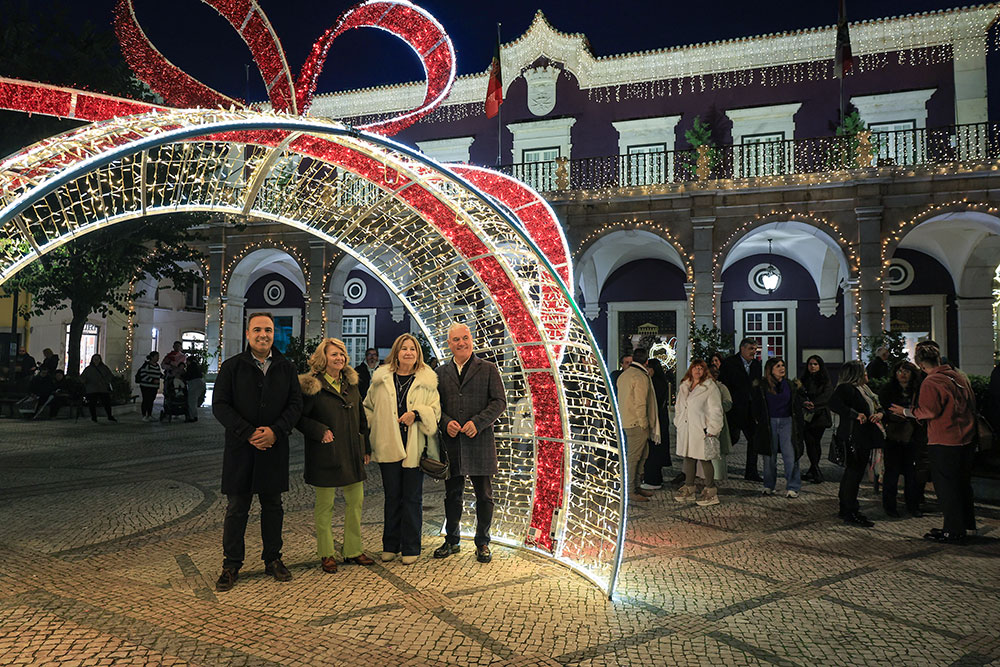 Na Praça de Bocage, perante centenas de populares, a presidente da Câmara, acompanhada da vice-presidente Maria do Carmo Tiago e dos vereadores Paulo Maia e Bruno Russo, participou no momento simbólico de ligação das iluminações de Natal, que agora iluminam o centro histórico, várias ruas da Baixa e diferentes edifícios públicos.