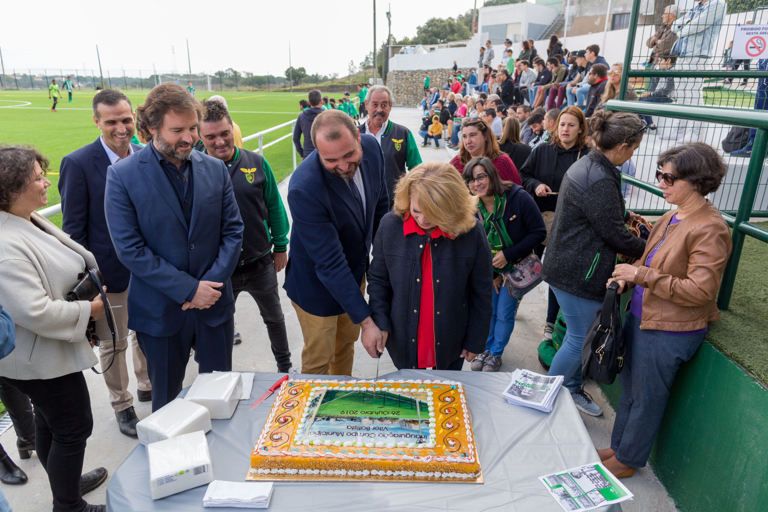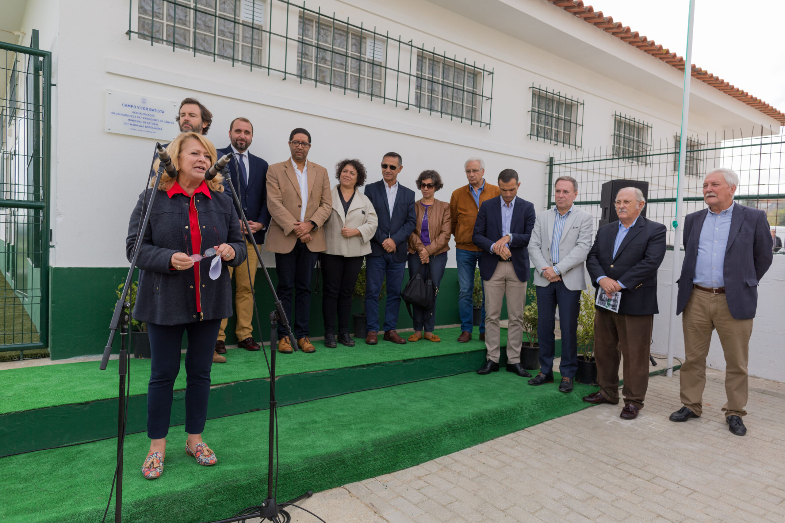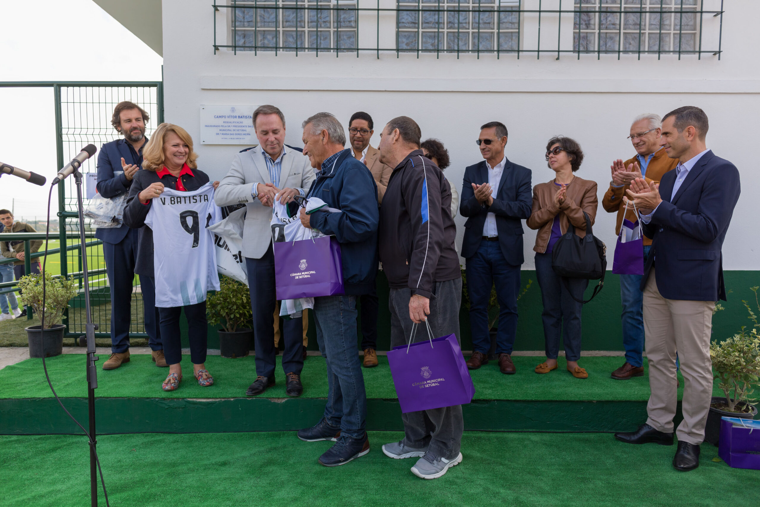 Na cerimónia de inauguração do Campo Municipal Vítor Batista, estiveram o diretor da Federação Portuguesa de Futebol Pedro Pauleta, o presidente do Vitória Futebol Clube, Vítor Hugo Valente, e o vice-presidente do Benfica Domingos Almeida Lima.