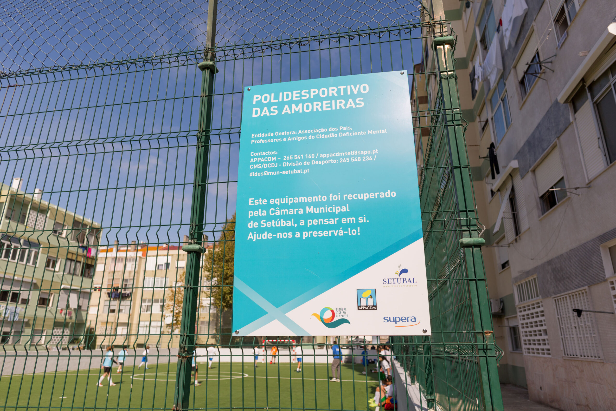 Já no Polidesportivo das Amoreiras, gerido pela APPACDM de Setúbal, representada pelo presidente, José Salazar, as intervenções tiveram como objetivo travar a degradação do equipamento e melhorar as condições da prática desportiva, com a colocação de relva sintética e de balizas novas e a pintura de muro, num investimento de cerca de 23 mil euros.