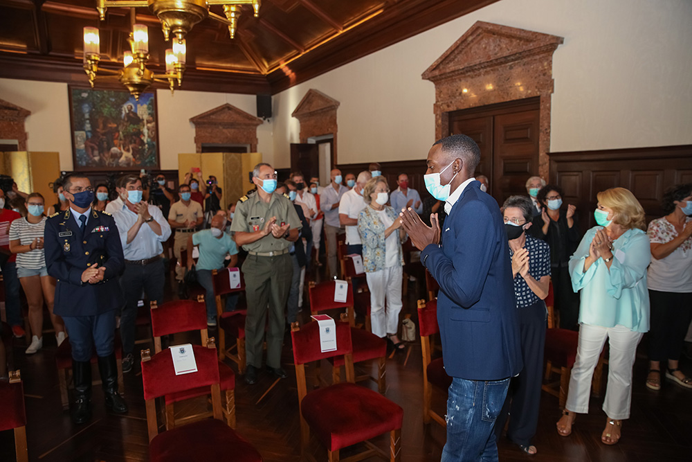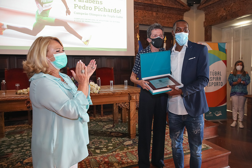 O campeão olímpico de triplo salto Pedro Pichardo foi homenageado esta tarde pela Câmara Municipal de Setúbal, num ato institucional realizado no Salão Nobre dos Paços do Concelho.