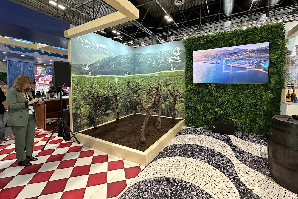 O pavilhão de Setúbal na FITUR 2024, com 60 metros quadrados, tem uma conceção inspirada no património local, em que inclui as aves da Herdade da Mourisca, os roazes-corvineiros do rio Sado, as vinhas das encostas da Serra da Arrábida, o peixe do Mercado do Livramento e os produtos da Mercearia Confiança de Troino.