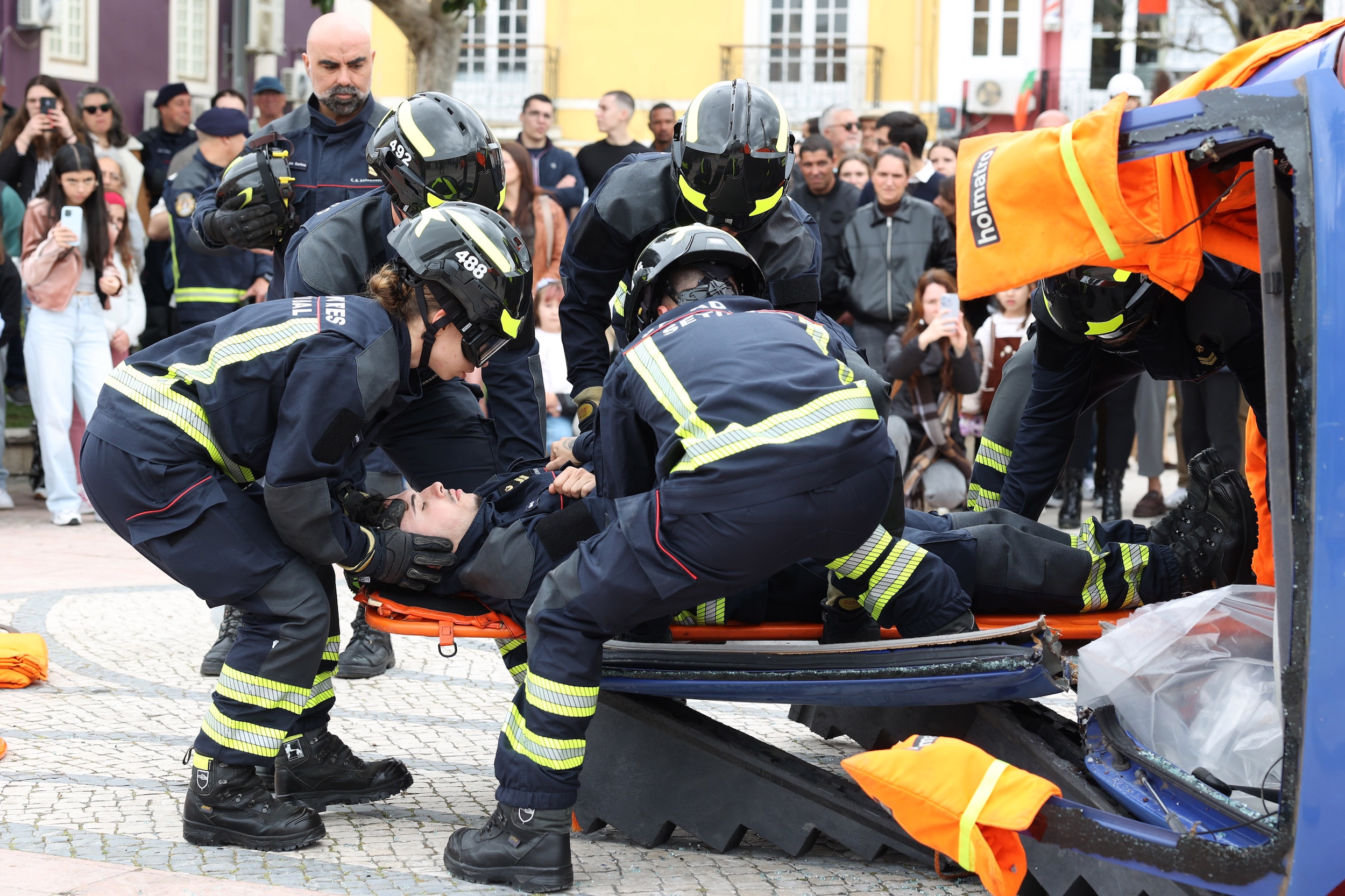 Após a sessão solene teve lugar um simulacro destinado a demonstrar algumas valências técnicas da CBSS, nomeadamente um combate a incêndio urbano com resgate de uma vítima, um desencarceramento e uma descontaminação.