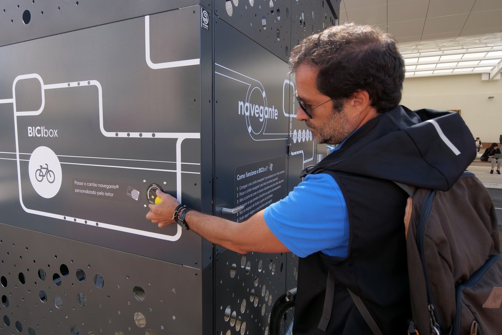 A bicibox, com capacidade para acomodar 12 veículos, consiste numa estrutura fechada, acessível apenas a titulares do passe Navegante, onde é possível estacionar bicicletas em segurança, prevenindo possíveis situações de furto.