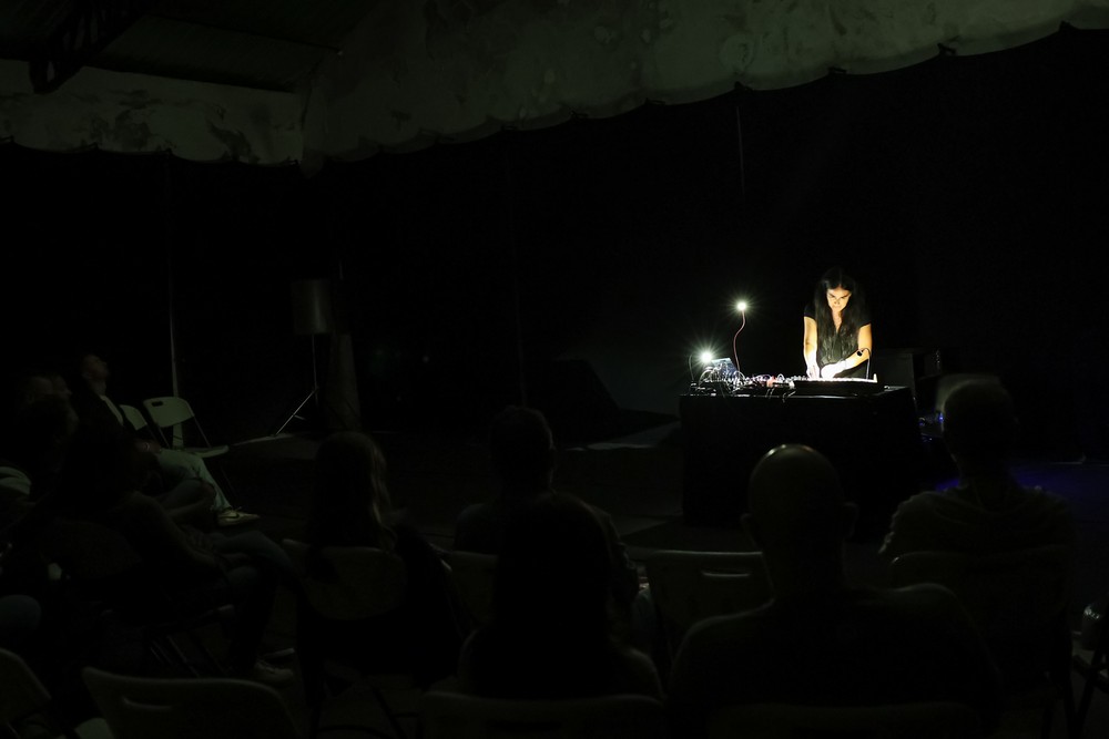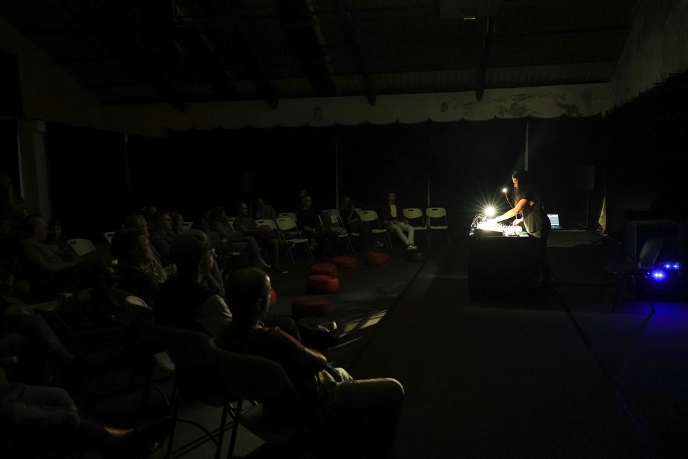 Depois de ao final da tarde ter havido uma conversa com a artista (artist talk), Carla Santana, que dedica parte da sua atividade à área das gravações de campo, apresentou a sua criação em forma de concerto/ato sonoro resultante de uma residência artística realizada no Parque Natural da Arrábida, em junho e julho, a qual reflete a vivência e o eco interior dos diversos locais da Arrábida e seus rumores.