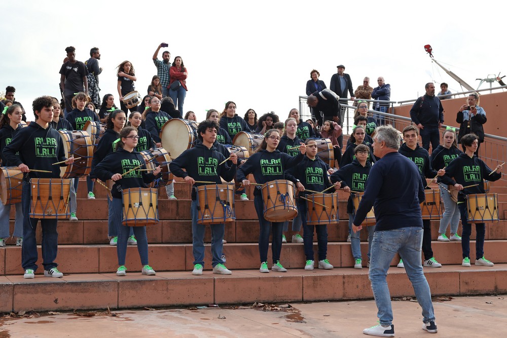 Depois de atuações individuais, os grupos fizeram uma interpretação em conjunto sob a baqueta do músico e coordenador do encontro, Fernando Molina, a qual ficou marcada por batidas fortes dos bombos e um dinâmico jogo de percussão.