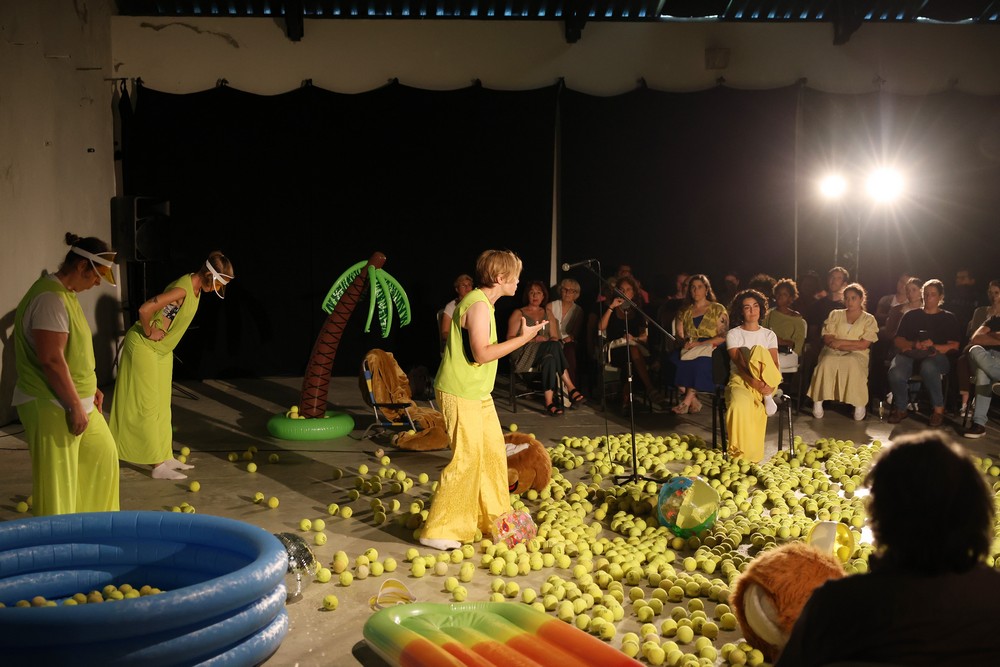 “Esto no es una homenaje a Rafaela Carrá”, da companhia espanhola Colectivo Niñas Malditas, apresentado ao final da tarde de 23 de agosto no Jardim do Bonfim, no âmbito da Secção Mais Festa – A Concurso, foi um dos destaques da programação que incluiu, no mesmo dia, no Fórum Municipal Luísa Todi, a apresentação de “Puños de Harina”, pela Aedo Teatro, no âmbito da Secção Oficial.