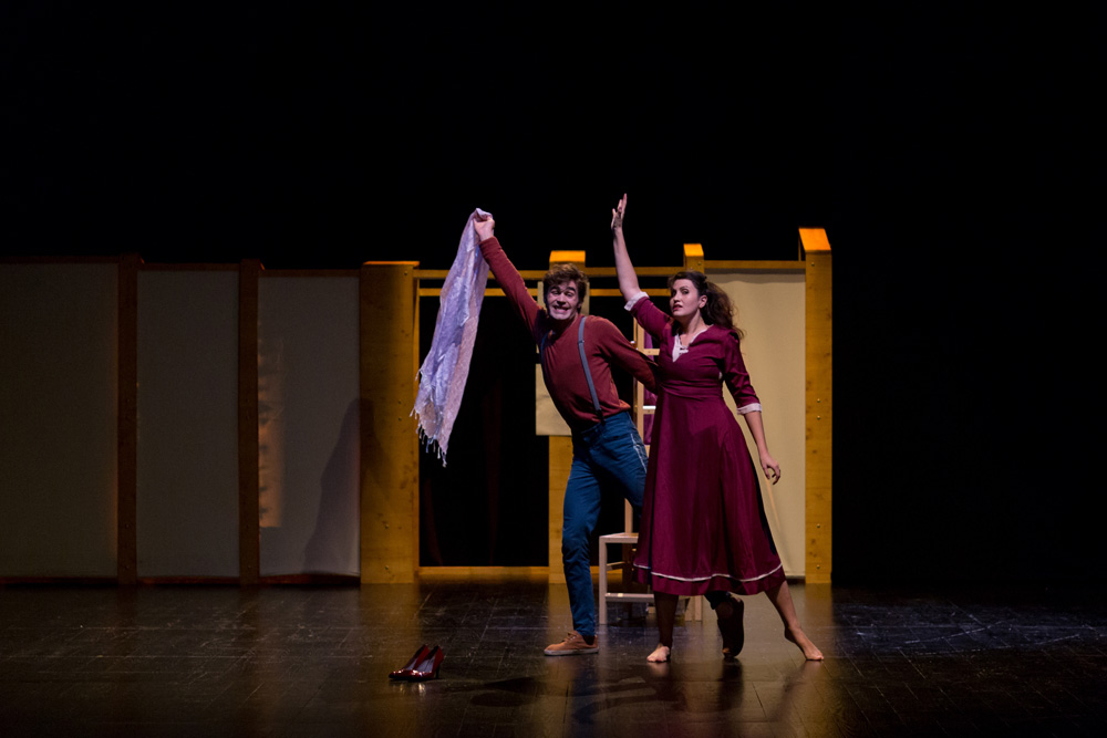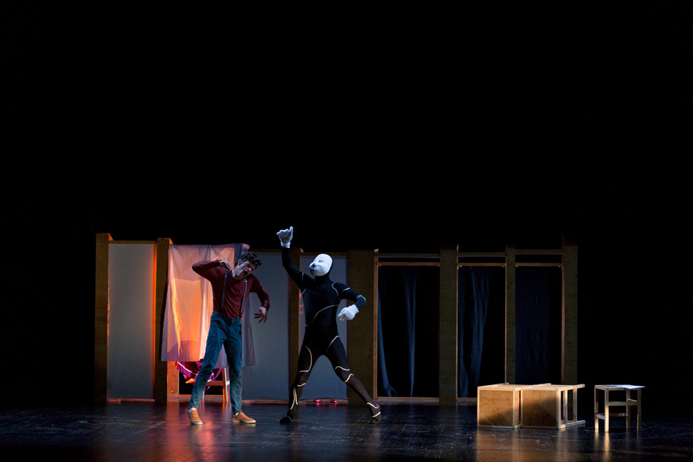 O espetáculo é parco em palavras, com os corpos dos atores a expressarem e transmitirem os principais momentos do enredo.