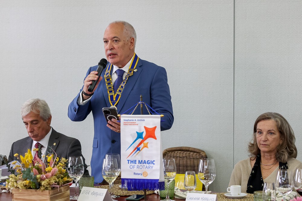 O evento, realizado na Casa Ermelinda Freitas, em Fernando Pó, Palmela, marcou a passagem de transmissão de tarefas para o mandato de 2024/2025, as quais ficam a cargo do novo presidente, José Coelho, que sucede na função ao rotário Vítor Marques.