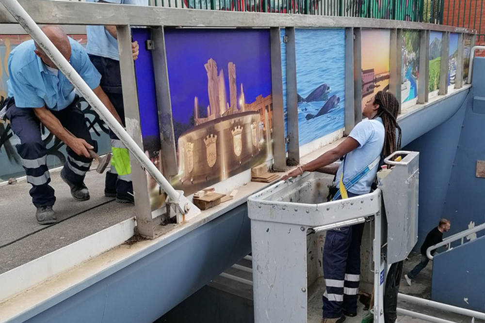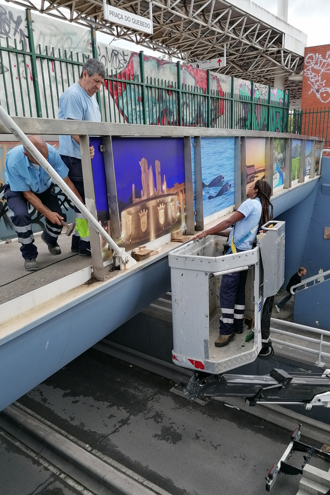 A substituição dos painéis fenólicos de proteção instalados no acesso superior do túnel, agora embelezados com imagens de excelência da cidade sadina e iluminação cénica, é uma das principais ações desta operação, a concluir, previsivelmente, durante a próxima semana.