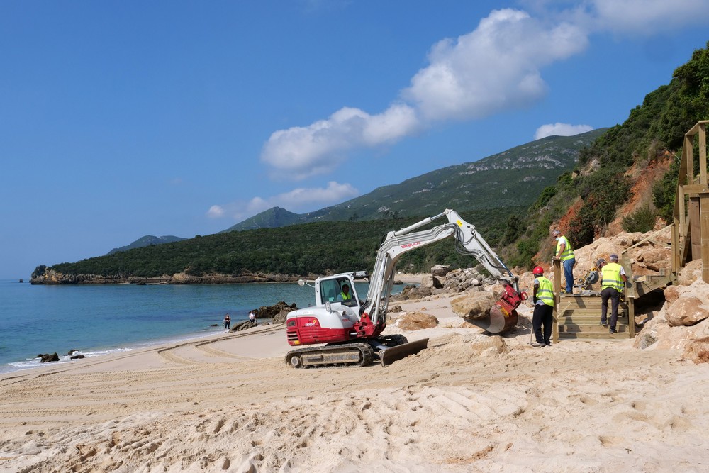 As intervenções a decorrer na Praia de Galapos, lideradas pela APA, num investimento de cerca de 160 mil euros assegurado na totalidade através do PO SEUR – Programa Operacional Sustentabilidade e Eficiência no Uso de Recursos, incluíram, em março, a demolição de uma construção ilegal que funcionava como restaurante numa zona de elevado risco, sujeita ao galgamento do mar.
