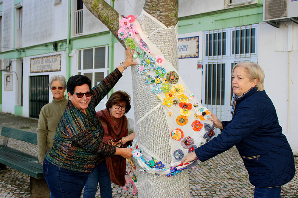 A Oficina de Partilha do Espaço MaiorIDADE, promovido pela Junta de Freguesia de S. Sebastião, voltou a embelezar as árvores do Largo Manuel da Luz Graça, frente à sede da JFSS, com flores, estrelas e uma árvore de Natal, concebidas em tecidos de várias cores e padrões.Inspiradas pela quadra natalícia, as cerca de duas dezenas de participantes da Oficina de Partilha do Espaço MaiorIDADE, conceberam, com retalhos de tecidos e botões, coroas de flores, múltiplas flores de tamanhos, cores e padrões variados, uma árvore de Natal e estrelas.