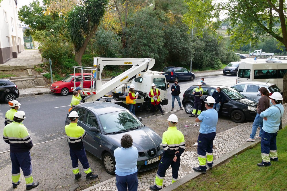 A viatura, que na manhã de dia 11 esteve em trabalhos de manutenção de árvores na Rua Nova Sintra, conta com uma série de especificidades técnicas que permitem facilitar este tipo de intervenções no espaço público.