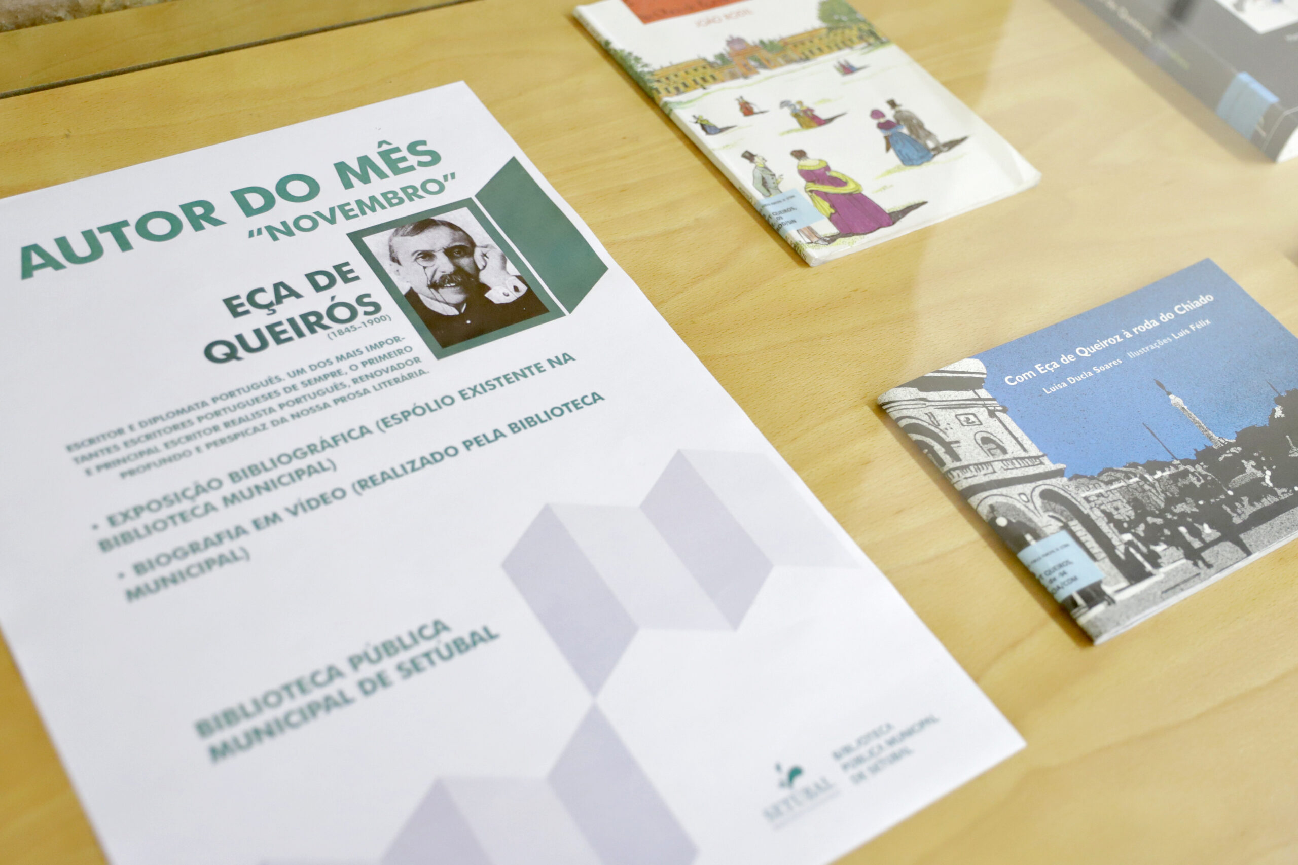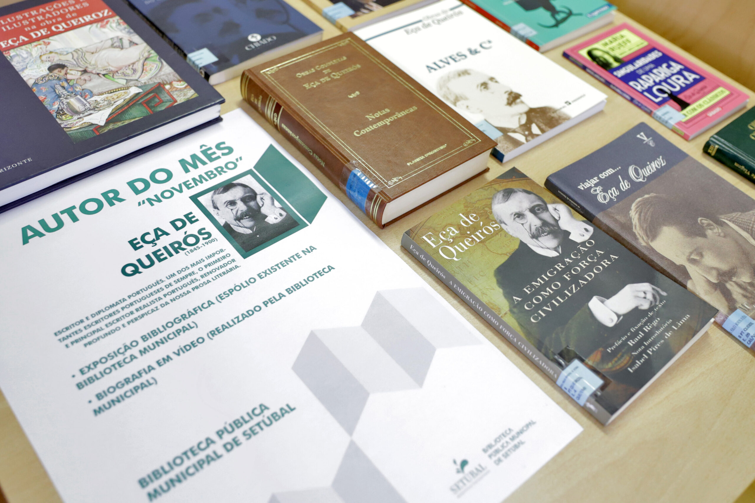 A mostra, realizada no âmbito do projeto municipal “Autor do Mês”, agrega mais de duas dezenas de livros da autoria de Eça de Queirós, bem como de outros autores que abordaram a vida e obra do primeiro escritor realista português.