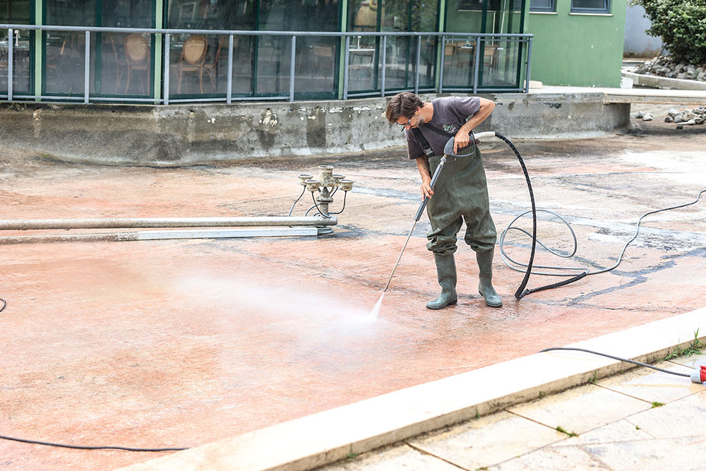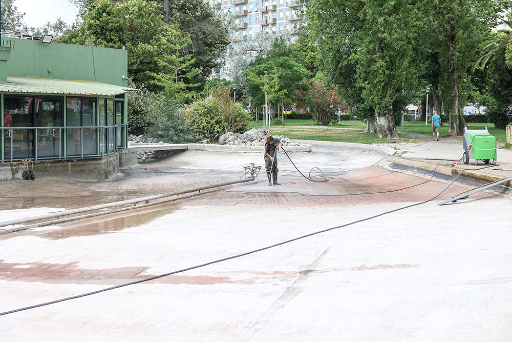 No Parque do Bonfim, além das normais tarefas de manutenção, decorrem ações de especial de limpeza do lago, por uma empresa especializada, com lavagem de toda a área com jato de água quente, mais eficiente, e reparação de fissuras com um impermeabilizante, para evitar perdas de água.