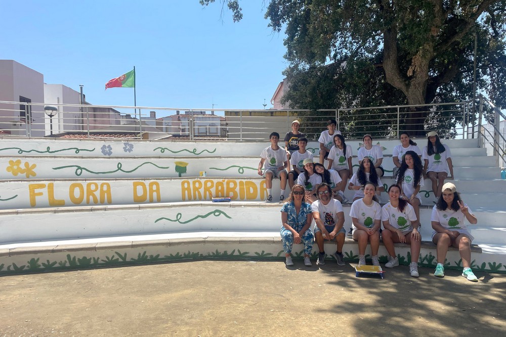 No anfiteatro de Vendas de Azeitão, voluntários contaram com o apoio da junta de freguesia azeitonense para tornar possível a pintura daquele espaço público com motivos da flora da Arrábida.
